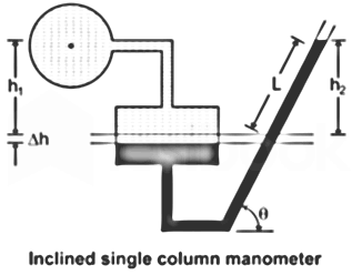 | 64 | A ________is an instrument used for measuring small pressures, where accuracy is required. | anemometer | hygrometer | single column inclined manometer | ammeter | c | Inclined column manometer: In an inclined column manometer the column is inclined at some angle with the horizontal axis. Due to inclination, the distance moved by the heavy liquid in the right limb is more. This manometer is more sensitive.  The sensitivity of the inclined manometer is given by \(\frac{1}{sinθ}\) The inclined manometer is used for measuring the actual airflow and is simply a more sensitive way of using a manometer, what is of interest is still the height the fluid moves up vertically. | Comments | Active | |