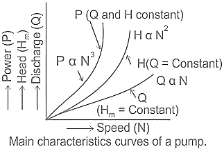 | 32 | In the main characteristic curve of a centrifugal pump, the power is proportional to: | Cube of speed | Square of speed | Fourth power of speed | Speed | a |   \(PâˆN^{3}D^{5}\)  | Comments | Active | |