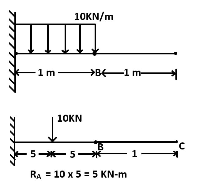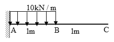 | 77 | A cantilever beam carries a uniformly distributed load over a span of 1 m as shown in the figure below. The reactive moment at point A is _________.  | 30 kN - m | 10 kN - m | 5 kN - m | 0 kN - m | c |  | Comments | Active | |
