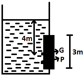 | 58 | A circular opening, 3 m diameter, in a vertical side of a tank is closed by a disc of 3 m diameter which can rotate about a horizontal diameter and depth of centre of gravity from free surface is 4 m. What will be the total pressure on the disc? | 175.7 kN | 234.89 kN | 100 kN | 277.4 kN | d |  Given \(D=3 m\) \(h=4m\) \(Ï=1000 kg/m^{3}\) \(g=9.81 m/s^{2}\) \(F=ÏgAh\) \(F=1000×9.81×\frac{Ï€}{4}×3^{2}×4\) \(F=277371.21 N\) \(F=277.371 KN\) | Comments | Active | |