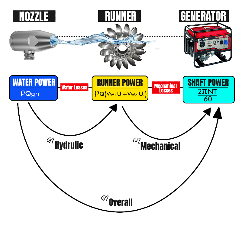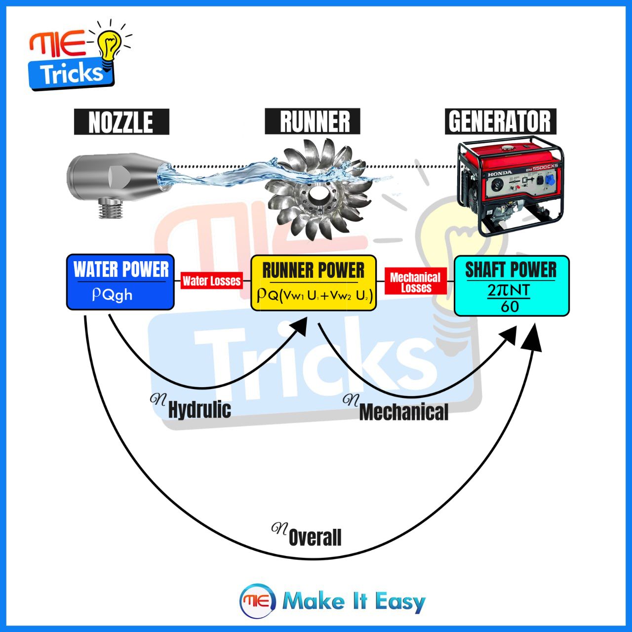 | 37 | In the context of work done of turbine, the power developed by the runner depends on which of the following parameters? | Whirl velocity only | Whirl and blade velocities | Blade velocity | Velocity at the exit of draft tube | B |   ∴The power developed by a turbine runner is directly related to the energy extracted from the working fluid (usually water). This energy extraction occurs through the interaction of the runner blades with the fluid flow. Two key parameters influence this interaction and, consequently, the power developed: Whirl Velocity (Vw): This is the tangential velocity of the fluid particles relative to the runner axis. It represents the potential energy of the fluid due to its rotation. Blade Velocity (U): This is the tangential velocity of the runner blades. It represents the kinetic energy of the blades and their ability to extract energy from the fluid. | Comments | Active | |