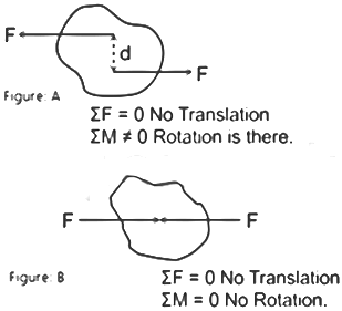| 93 | Which of the following statements about equilibrium is correct? | Summation of all the forces acting in one direction must not be zero. | Summation of all the forces acting in all the possible directions must be zero. | Summation of all the forces acting in all the possible directions must be non-zero. | Summation of all the forces acting in one direction must be zero. | b | If the sum of all forces acting on the body is zero, then it is not necessary that the body will be in equilibrium. For the explanation, let us take an example.Let us assume that two equal and opposite forces having their line of action at a certain distance apart act on a body. Then the body in this case will not have translational motion but have rotation due to torque produced. Hence not in equilibrium. If two equal and opposite force act a point or concurrent, then the torque produced will be zero. The body will not have translational and rotational motion and will be in equilibrium.  | Comments | Active | |