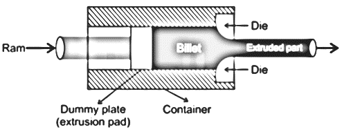 | 36 | The process of pushing the heated billet or slug of metal through an die orifice, thus forming an elongated part of a uniform cross-section corresponding to the shape of the die orifice is known as ____________ | Drawing process | Rolling process | Â Machining process | Extrusion process | d |  In the extrusion process, a heated billet or slug of metal is forced through a die orifice, thus forming an elongated part of a uniform cross-section corresponding to the shape of the die orifice. The rolling process, on the other hand, involves passing a billet or slab of metal between two rollers to reduce its thickness and increase its length. The drawing process involves pulling a billet or bar of metal through a die to reduce its diameter and increase its length. The drawing process involves pulling a billet or bar of metal through a die to reduce its diameter and increase its length. The machining process involves removing material from a workpiece to create the desired shape and dimensions. Squeezing toothpaste from a tube is a familiar example of extrusion. In extrusion billet experiences compressive stress. Various factors on which an extrusion process depends are die design, extrusion ratio, billet temperature, lubrication, extrusion speed, and metal properties. Among these, the most important factor is metal property. For successful extrusion to happen the metal should be plastic. | Comments | Active | |