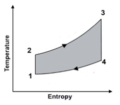 | 24 | In the given T-S diagram of Otto cycle, which of the following processes is a heat addition process?  | 2-3 | 4-1 | 1-2 | 3-4 | a | The schematic of each process of Otto cycle are-  1. Process 1 - 2: Isentropic compression 2. Process 2 - 3: Constant volume or isochoric heat addition 3. Process 3 - 4: Isentropic expansion 4. Process 4 - 1: Constant volume or isochoric heat rejection | Comments | Active | |
