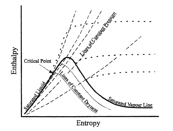 | 18 | The reversible adiabatic process in Mollier chart is represented by _________. | A line parallel to the saturated water line | A vertical line | A horizontal line | A line parallel to the saturated vapour line | b | Vertical lines represents reversible adiabatic process while horizontal lines represent isenthalpic process.  | Comments | Active | |