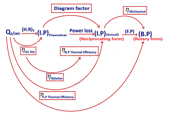 | 96 | The ratio of the actual brake thermal efficiency obtained from an engine to the theoretical efficiency of the engine cycle is called: | brake thermal efficiency | scavenging efficiency | relative efficiency | combustion efficiency | c | Relative Efficiency \(η_{rel}=\frac{Actual thermal efficiency}{Air standard efficiency}=\frac{η_{act}}{η_{air std}}\) MIE Trick to Remember:-  | Comments | Active | |
