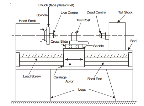 | 2 | Which part of the lathe has a long shaft with the keyway extending from the feed box across and in front of the bed? | Lead screw | Feed rod | Sliding gear shaft | Headstock spindle | b |  | Comments | Active | |