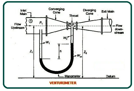 | 42 | The pressure of the liquid flowing through the divergent of a venturimeter | Remains constant | Increase | Decreases | Depends upon mass od liquid | b |  This is done to ensures a rapid converging passage and a gradual diverging passage in the direction of flow to avoid the loss of energy due to separation. In course of flow through the converging part, the velocity increases in the direction of flow according to the principle of continuity, while the pressure decreases according to Bernoulli’s theorem. The velocity reaches its maximum value and pressure reaches its minimum value at the throat. Subsequently, a decrease in the velocity and an increase in the pressure take place in course of flow through the divergent part. | Comments | Active | |