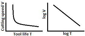 | 164 | The following is not true for the tool life equation | The smaller the value of n steeper the slope of log V-log T line | For ideal tool material n=1 | The larger the value of C smaller is the tool life | The range of variation of n for HSS is 0.08 - 0.20 | a | Speed and tool life with graph.  Taylor tool eye Eqn. VTn = c where v = Cutting speed in m/min T= Tool life in minutes n= an index related to cutting tool material For high speed steel tools, n=0.1 to 0.2 for tungsten carbide tools, n=0.2 to 0.4 for ceramic tools, h=0.4 to 0.6 c = a constant It is numerically equally to the cutting speed that gives to life of one minute (C =V*1n=V) To find a steeper curve value of n should be higher n. Gives the slope of log and Log T graph. Ideal tool materials means for any value of cutting velocity tool life will the same always If n=1 product of v and I will be always constant. V Tn=C if n=1, VT=C if the value of material strength constant c is higher, it means strength of material is higher and during Machining hence d of it tool life will be lower. | Comments | Active | |