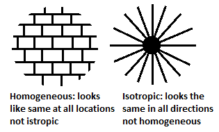 | 144 | The materials which exhibits the same elastic properties in all directions are called | Isotropic | homogeneous | perfectly elastic | anisotropic | b | Homogeneous - same properties throughout. Isotropic – Properties are same no matter what direction you’re looking. Orthotropic – Properties are same along perpendicular direction only. Anisotropy – Properties are different in each direction.  | Comments | Active | |