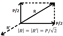 | 84 | Two forces each equal to P/2 act at right angles. Their effect may be neutralized by a third force acting along their bisector in the opposite direction with a magnitude of | P | P/2 | P \(2\) | P/ \(2\) | d | Apply law of parallelogram  \(R^{2}=(\frac{P}{2})^{2}+(\frac{P}{2})^{2}+2.\frac{P}{2}.\frac{P}{2}cos 90°\) \(\frac{P^{2}}{2}+\frac{P^{2}}{4}+\frac{2P^{2}}{4}×0\) \(R^{2}=\frac{P^{2}}{2}\) \(R=\frac{P}{2}\) Now if we apply on opposite and equal force R’ will balance the 2 force (given)  | Comments | Active | |