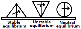 | 80 | Which of the following represents the state of neutral equilibrium? | Cube resting on one edge | A smooth cylinder lying on a curved surface | A smooth cylinder lying on a convex surface | None of the above | d | A body is said to be in neural equilibrium if on being slightly displaced it remains in its new position e.g., a ball placed on a horizontal surface or a cone supported on its side on a horizontal surface. When the centre of gravity, of a body lies at the point of suspension or support, the body is said to be in neutral equilibrium. Ex: rolling ball. If a ball is pushed slightly to roll, it will neither come back to its original nor it will roll forward rather it will remain at rest.  | Comments | Active | |