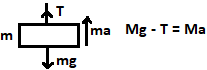 | 71 | Two bodies of mass m and M are hung at the ends of a rope passing over a frictional pulley. The acceleration in which the heavier mass M comes down is given by the following | g(M – m)/M +m | g(M + m)/M -m | gM /M +m | g x M / M – m | a | \(m   Add both equation \(Mg-mg=Ma+ma\) \(=a(\frac{M_{g}-m_{g}}{M+m})=g(\frac{M-m}{M-m})\) | Comments | Active | |
