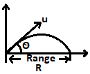 | 68 | For the maximum range of a projectile, the angle of projection should be | 30 \(°\) | 45 \(°\) | 60 \(°\) | 90 \(°\) | b | \(r=\frac{u^{2}sin2θ}{g}\) RWill be max when \(sin 2θ=1=sin 90°\) Or \(2θ=90°\) \(θ=45°\)  | Comments | Active | |
