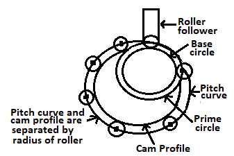 | 51 | For a roller follower, pitch curve and cam surface are | Identical | separated by the radius of the roller | separated by the diameter of the roller | separated by one and half times the radius of the roller | b |  Pitch Curve: It is the curve craven by the trace point (Reference paint on the follower to trace the cam profile) assuming that the cam is fixed, and the trace point of the follower rotates around the cam. The trace point of the roller follower roller is the centre of the Thus for the roller follower. pitch curve and cam surface are separated by the radius of the roller. | Comments | Active | |