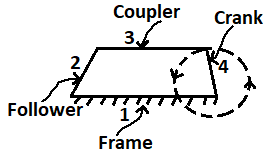 | 47 | In a four-bar mechanism the following instantaneous center of rotation is not present | Fixed | Permanent | neither fixed nor permanent | Perpendicular to the line joining center of rotations of crank and lever at infinity | d | Fixed instantaneous centre’s = 1 and 2.  4 bar mechanism Permanent Instantaneous centre = 3 and 4 Neither fixed nor permanent = 5 and 4 | Comments | Active | |