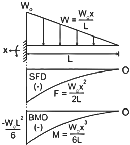 | 71 | Which of the following is the CORRECT bending moment diagram for the cantilever beam carrying uniformly varying load from zero at free and w/unit length at the fixed end? |  |  |  |  | b | The cantilever beam carrying uniformly varying load from zero at free and w/unit length at the fixed end is given below:  | Comments | Active | |