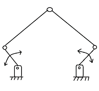 | 96 | What is the total number of links and joints in the mechanism as shown in figure?  | 3 and 3 | 3 and 2 | 4 and 3 | 4 and 4 | d | There are four links, three binary joints asn one higher pair, i.e. L= 4 j = 3 and h =1 Degree of freedom: n = 3 (L – 1) – 2 j – h n = 3 (4 – 1) - 23 – 1 = 2 \(∴\) \(×\) | Comments | Active | |