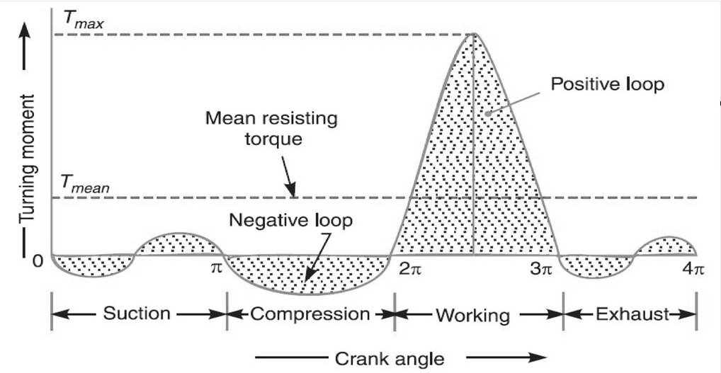 | 94 | The graph of turning moment diagram is drawn between ________ | crank angle and crank radius | crank angle and crank effort | crank effort and crank angle | crank radius and crank angle | c |  A turning moment diagram or crank effort diagram shows the relationship between the turning moment or torque and the crank angle at various crank positions. It is drawn in cartesian coordinates, with the turning moment on the vertical (Y-axis) and the crank angle on the horizontal (X-axis). | Comments | Active | |
