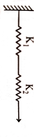 | 172 | Equivalent stiffness of the following system will be:  | \(K_{1}+K_{2}\) | \(\frac{(K_{1}+K_{2})}{2}\) | \(\frac{(K_{1}K_{2})}{(K_{1}+K_{2})}\) | \(K_{1}+K_{2}\) | c | Springs in series: \(\frac{1}{k_{e}}=\frac{1}{k_{1}}+\frac{1}{k_{2}}\) Springs in parallel: \(k_{e}=k_{1}+k_{2}\) In above question series combination is given , so = \(k_{eq}\) \(\frac{k_{1}k_{2}}{k_{1}+k_{2}}\) | Comments | Active | |
