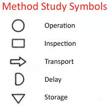 | 159 | The symbol used for transport in work study is _______. | a | Method Study Symbols Operation  Inspection  Transport  Delay  Storage  | Comments | Active | |||||